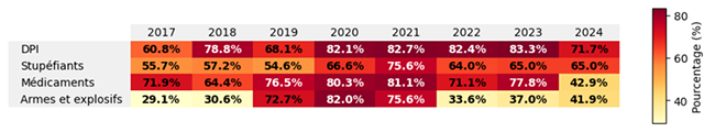 Force est de constater que, malheureusement, toutes sortes de marchandises illicites, voire parfois dangereuses, sont expédiées via les colis postaux et express. L’analyse des données soumises par les administrations des douanes à la base de données du Réseau douanier de lutte contre la fraude (CEN) montre une augmentation du nombre de saisies de produits illicites transportés par ces opérateurs, mais aussi une hausse des volumes de marchandises interceptées.